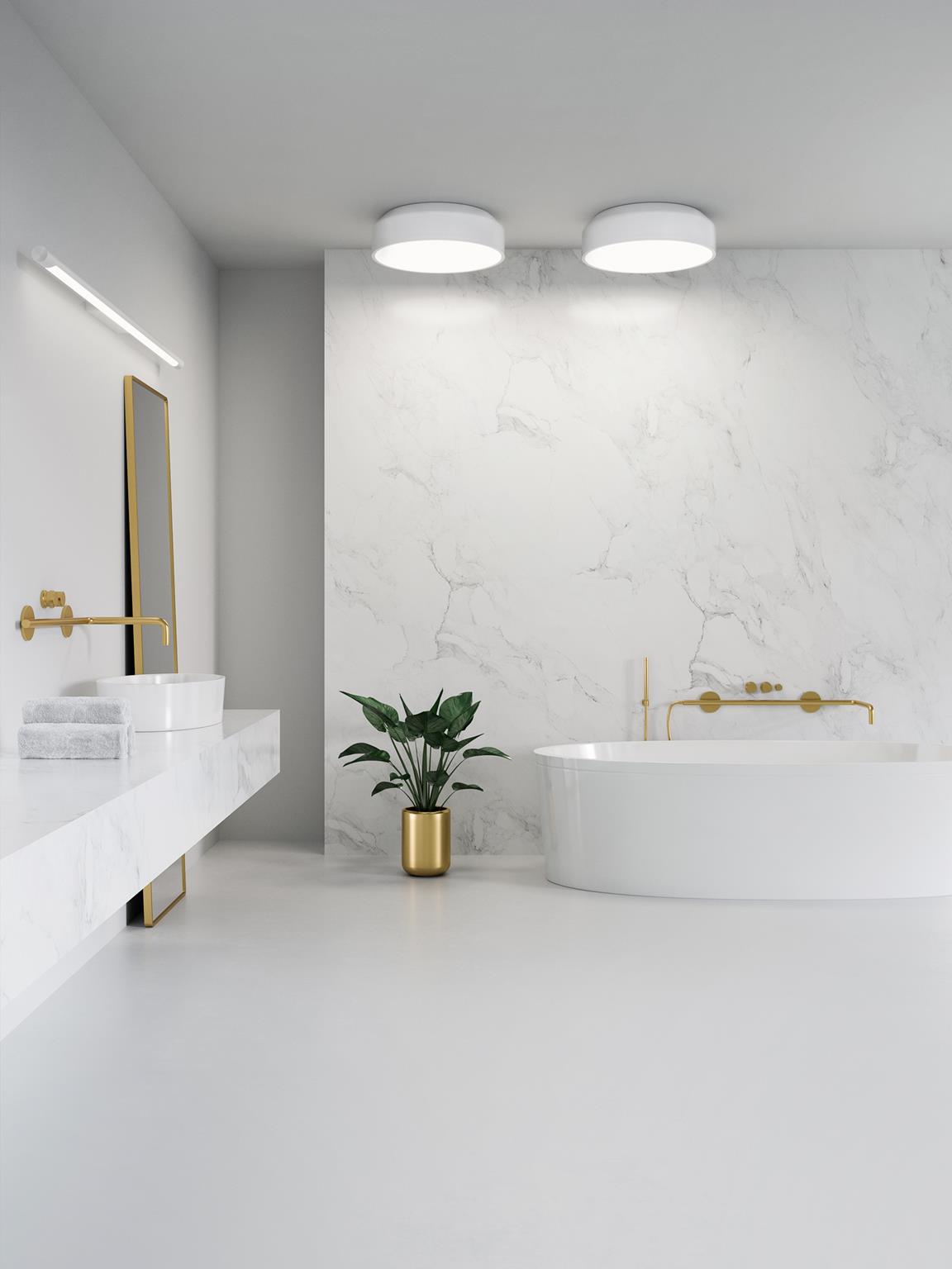 Najczęściej lustro, a więc i oświetlenie znajduje się blisko umywalki. Warto zwrócić uwagę na oświetlenie o podwyższonej szczelności – właściwa to IP44 lub wyższe. Oprawy hermetyczne gwarantują, że utrudnione warunki jak np. para wodna, nie wpłyną negatywnie na ich działanie. Bez względu na wybór technologii powinniśmy pamiętać o naszym bezpieczeństwie.