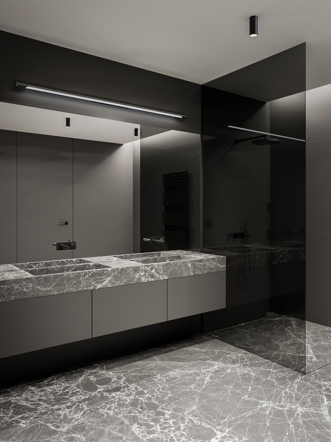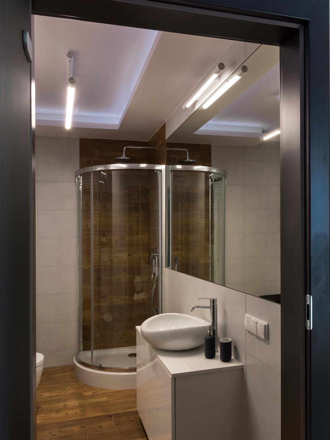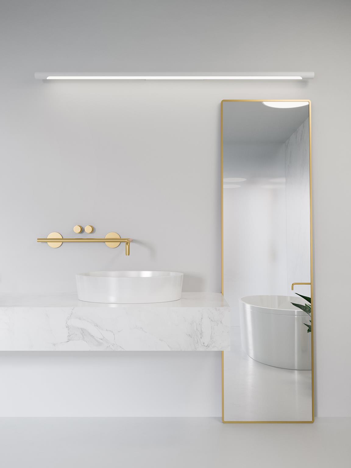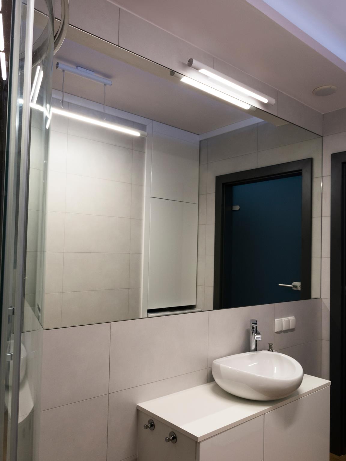 Urządzając łazienkę warto pomyśleć od samego początku o dobrze oświetlonym lustrze. Kiedy określimy już miejsce jego montażu, należy zastanowić się nad powieszeniem oświetlenia. Najlepiej i najwygodniej – po bokach lub nad lustrem. To spowoduje, że cienie od oświetlenia ogólnego zostaną zminimalizowane, a twarz będzie dobrze doświetlona. Warto tutaj zwrócić uwagę na dwa parametry: niską temperaturę pracy (dzięki temu unikniemy ryzyka niebezpiecznego rozgrzania obudowy) oraz dobór właściwej mocy i strumienia świetlnego opraw. Zamiast jednej mocnej lampy, warto wybrać kilka słabszych punktów świetlnych lub równomierne oświetlenie liniowe. Pojedyncza lampa o dużej mocy spowoduje mocniejsze olśnienie niż światło padające z wielu źródeł o niższych mocach.