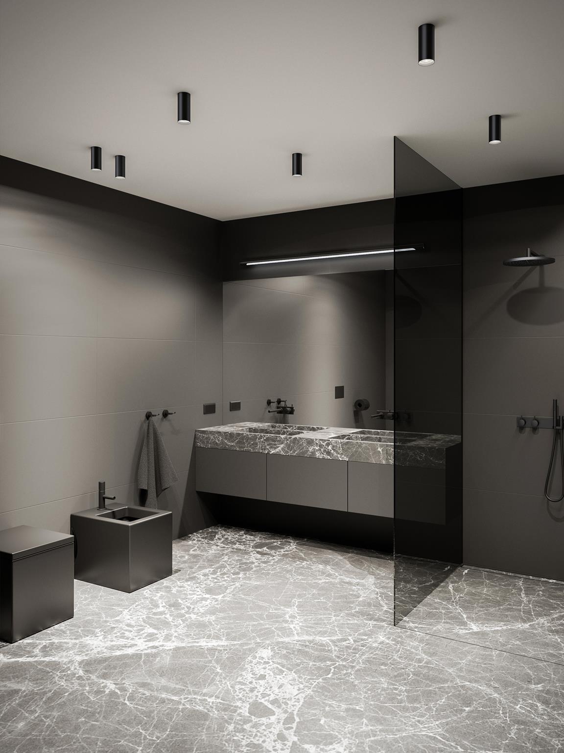 Jeśli zależy nam na odpowiednim, równomiernym oświetleniu twarzy – co zwłaszcza ułatwia makijaż, warto zadbać o odpowiednie rozproszenie światła. Przy lustrze najlepsze będą oprawy oświetleniowe z mlecznymi kloszami lub przesłonami, które rozproszą światło emitowane przez lampy. Z kolei jako tak zwane oświetlenie ogólne pomieszczenia, czyli to, które ma umożliwić łatwe poruszanie się po łazience, sprawdź się zarówno oświetlenie rozproszone, jak i skupione (punktowe).